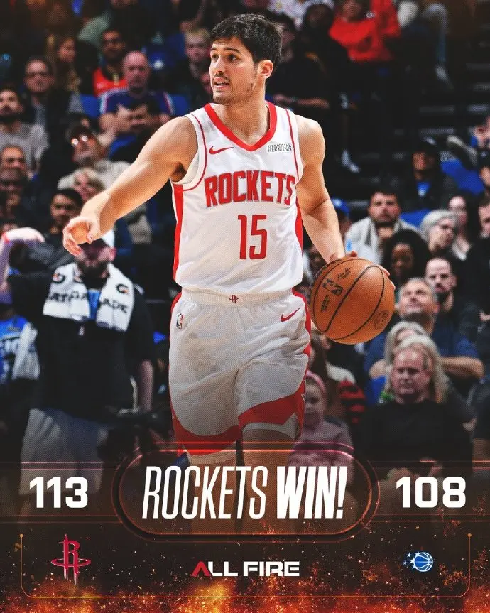 火箭今天在客场113-108逆转险胜魔术,取得三连胜,战绩来到37胜21负,继续排在西部第三,领先第四的掘金(37胜22负)半个胜场。魔术两连胜被终结,以31胜27负的战绩继续排在东部第七。火箭今天最多落后19分,但成功完成大逆转,本赛季也双杀了魔术。
