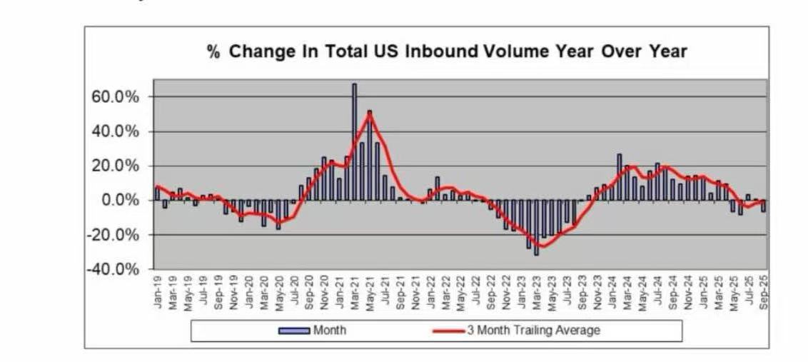 笛卡尔方面将9月的进口量下降归因于季节性需求疲软和关税相关谨慎情绪的双重影响。