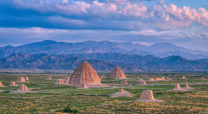 夕辉洒下,西夏陵的高大陵塔与贺兰山脉交相辉映,绝美苍凉。那些陵塔,是银川司机口中的“大土包”,却并非中原王朝帝陵中的封土堆。在战争与风霜侵蚀前,它们曾是宏伟华丽的佛塔,是党项将中原王朝陵寝制度与佛教信仰相结合的创新产物。