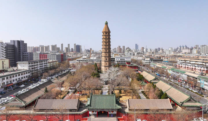 这是位于宁夏银川市兴庆区的承天寺塔(3月3日摄)。行走于银川大街小巷,昔日都城的亭台楼阁,大都灰飞烟灭,地基深埋。然而,熙攘闹市间,承天寺塔依旧耸立,砖木结构里,藏着没藏太后为幼子祈福的王朝往事;城北乡村的宏佛塔,出土大量西夏彩绘泥塑佛像、绢质彩画及西夏文雕版,彰显西夏汉藏融合的佛教文化;城市建筑工地间,曾发现来自五湖四海的瓷器残片,诉说着此地昔日繁荣活跃的商贸往来……